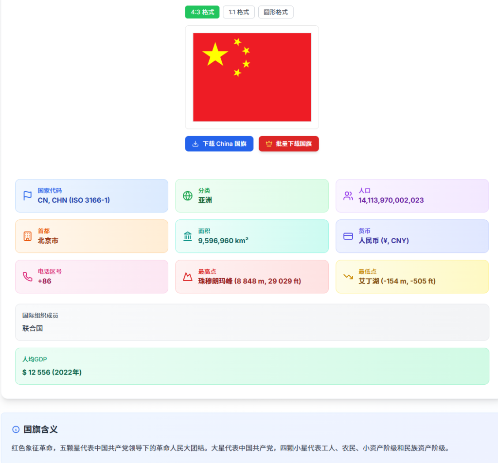 NationalFlag 是一个名为 “世界国旗大全” 的小型网站,提供高质量的国旗图片和国家信息,希望 “通过直观和教育性的体验,让每个人都能轻松获取国旗知识”。这个网站不仅涵盖全球200多个国家,还包括50个美国州旗以及联合国、欧盟等主要国际组织的旗帜。
