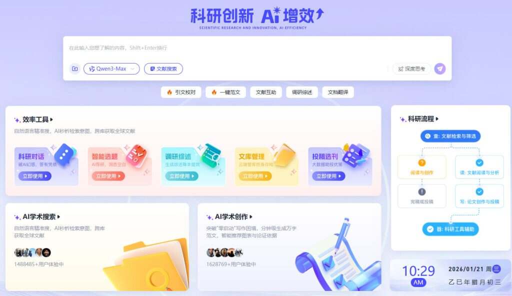 - 在科研的各个环节,如选题、创作、投稿等,都提供了高效的工具。例如,智能选题和定题评测能够快速确定研究方向,调研综述和研学创作功能能够在短时间内生成高质量的研究报告和论文初稿,投稿选刊功能能够快速匹配合适的期刊并预测录用概率,大大缩短了科研周期。