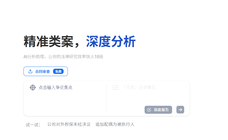 - 通过AI分析助理生成深度报告,对案件要点、裁判规则、风险点等进行结构化解读。
