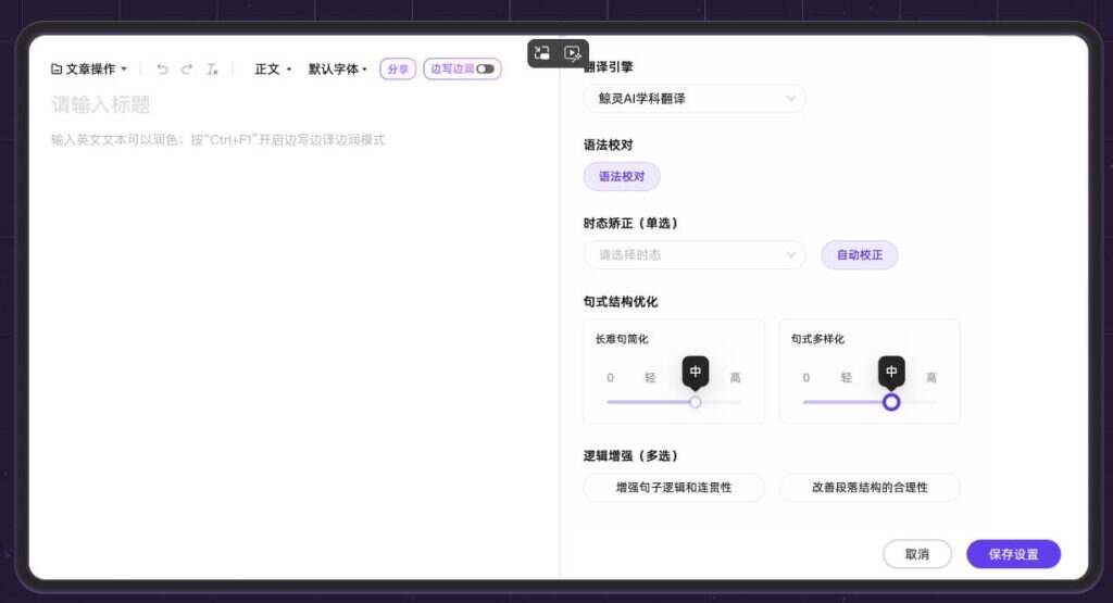 - 语言表达优化:提供语法校对、英式美式转换、时态校正、长难句简化、句式多样化和段落结构优化等功能,提升语言表达的地道性和专业性。