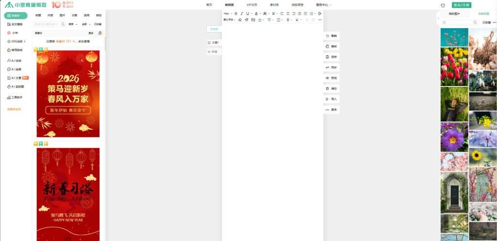- 提供丰富的模板和素材,支持一键排版。