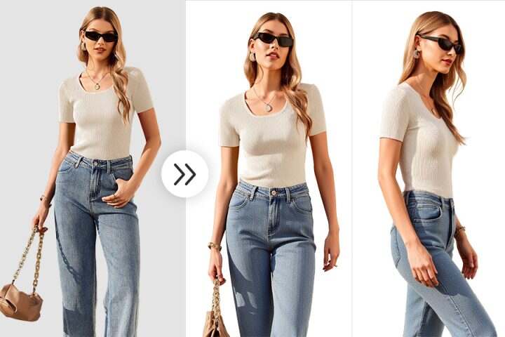在不改变模特、背景、款式前提下,实现局部或整体换色。支持莫兰迪色、荧光色、渐变色等复杂色彩替换,快速生成“同款多色”商品图,提升SKU展示效率。