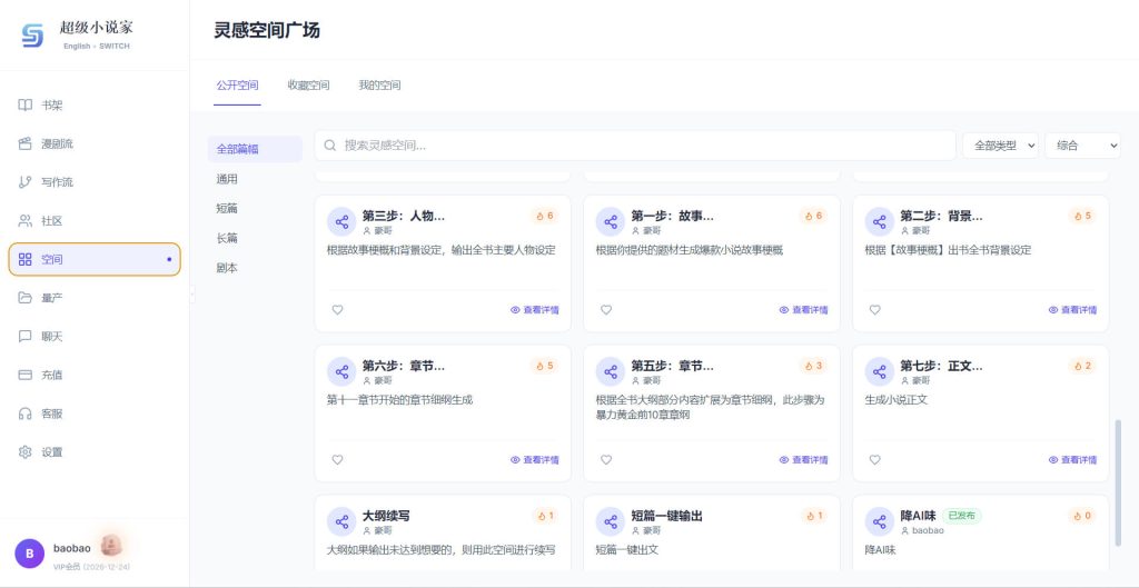 - 降低门槛:为新手提供现成的套路模板和设定,助其快速上手,写出结构完整的作品。