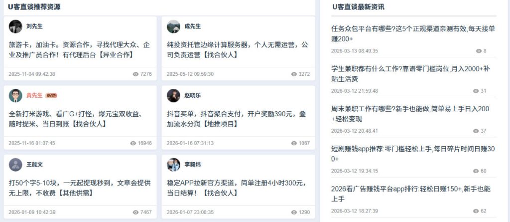 U客直谈 – 副业项目对接平台 生活服务 2026-03-13 汇集海量互联网副业项目的资源对接平台。涵盖小说推文、APP拉新、游戏搬砖、问卷调查等多种赚钱项目,适合寻找兼职或副业机会的用户。 功能:项目对接、资源查找、副业交流。 网址:https://www.ukezhitan.com/ 生活服务 上一篇 ToolFK – 程序员在线工具箱 下一篇 表情融合 – Emoji创意厨房 延伸阅读: 热度 时效 暂无内容!
