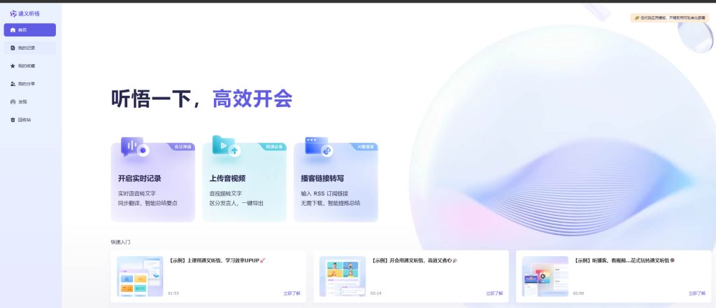 阿里云推出的录音转文字工具,支持APP及微信小程序。能实时记录会议内容,自动区分发言人,并生成摘要和待办事项。
