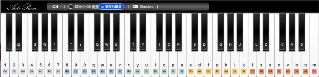 一个完全在浏览器中运行的钢琴模拟器。支持电脑键盘映射(如 A-S-D-F 对应音符)和手机触屏的多指操作,音色真实。适合音乐初学者熟悉音阶,或临时需要演示一段旋律的场景。