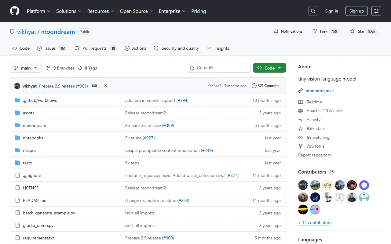 Moondream 是一款主打“极致轻量化”的开源视觉语言模型(VLM)。它的核心卖点正如其口号所说“kicks ass and runs anywhere”,即不仅性能强大,还能在普通笔记本电脑甚至树莓派等边缘设备上流畅运行,非常适合对数据隐私和本地部署有要求的开发者。