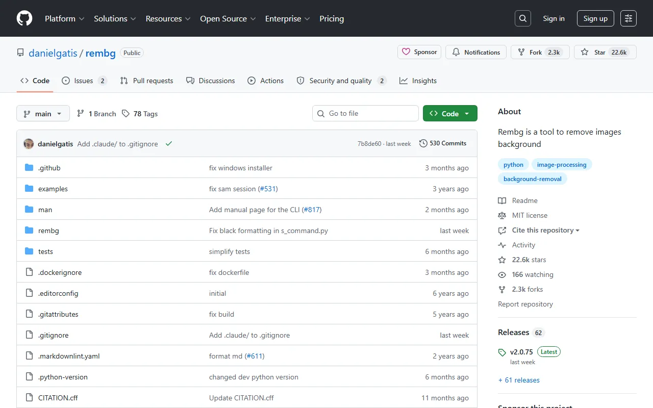 “Rembg is a tool to remove images background.” — GitHub 仓库简介,截至目前该项目已经累积 19.1K⭐,展示了它在开发者社区中的高人气!在视觉内容需求越来越旺盛的今天,例如电商商品图、个人社交照、海报设计等场景,都离不开高效准确的背景抠图工具。Rembg 正是一个能够轻松在本地完成高质量图片背景抠图的开源利器,以下通过项目详解、示例演示、多角度对比,带你深度了解它的魅力。