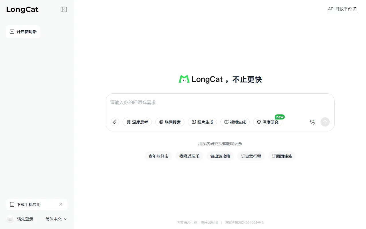 - LongCat:https://longcat.ai/,开源免费,GitHub+Hugging Face可下载