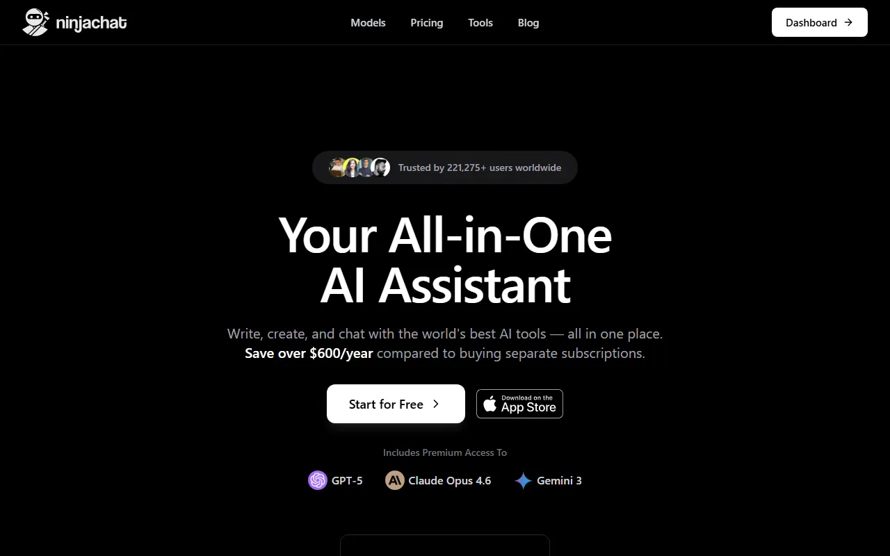 NINJACHAT AI:多模型同屏PK,省心省钱